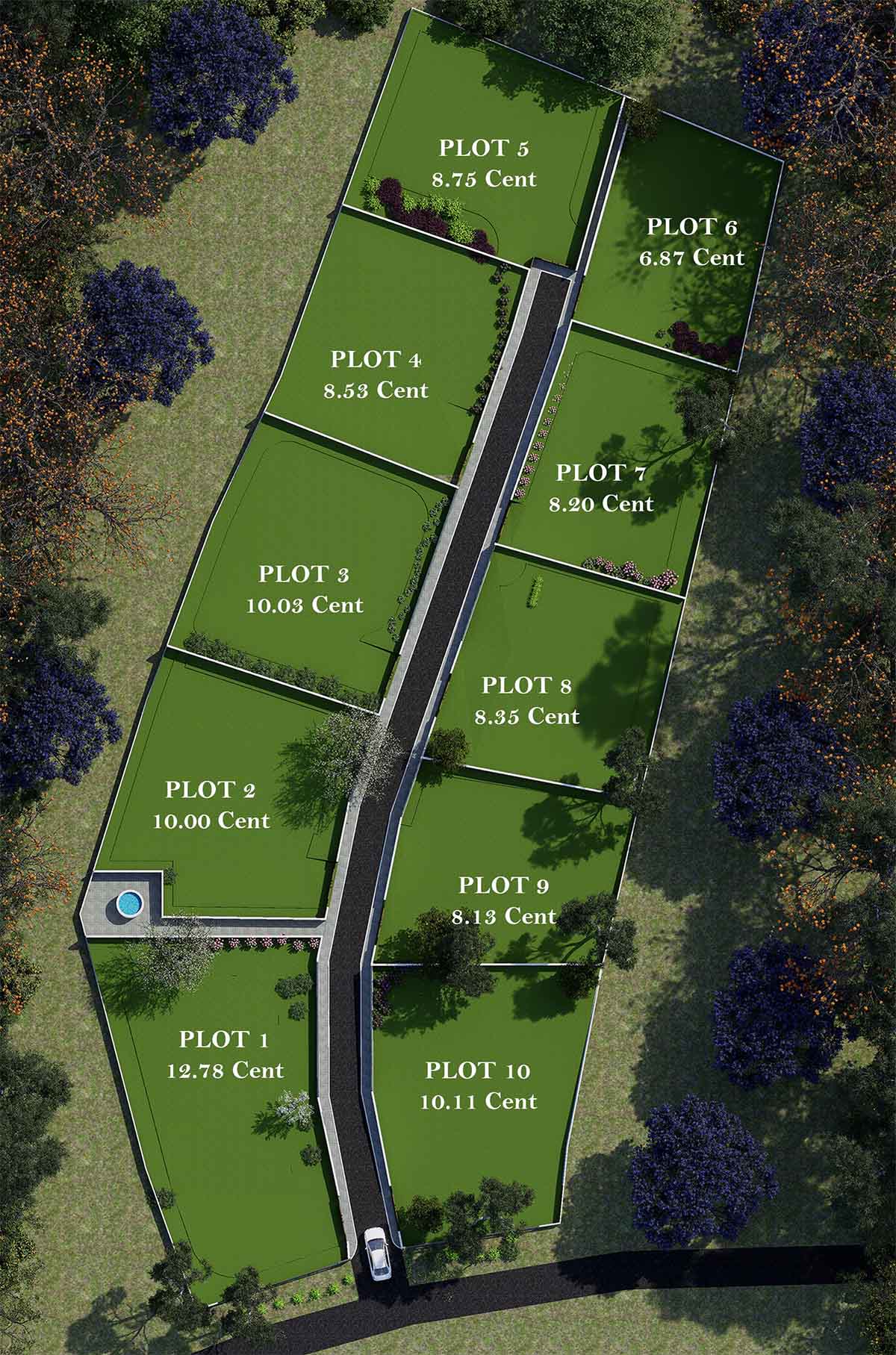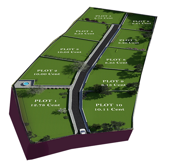 Expertly crafted to provide ample space and comfort, our villa plots range from 7 to 12 cents, ideal for building your dream villa. Every plot is thoughtfully designed to complement the natural beauty while ensuring modern conveniences.